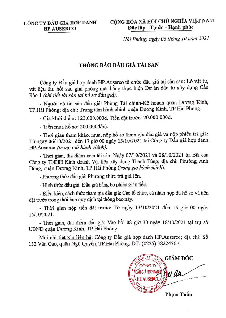 Lô vật tư, vật liệu thu hồi sau giải phóng mặt bằng thực hiện Dự án đầu tư xây dựng Cầu Rào 1