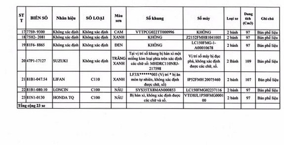 Lô số 2: 23 xe hư hỏng bán phế liệu; Giá khởi điểm: 14.000.000 đồng.