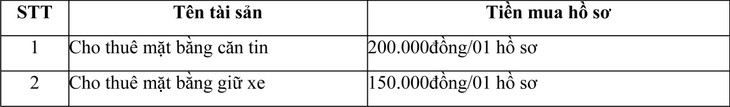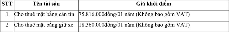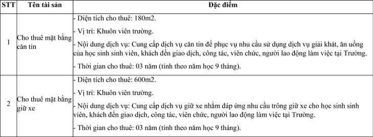 a) Loại tài sản: Cho thuê mặt bằng căn tin và mặt bằng giữ xe.