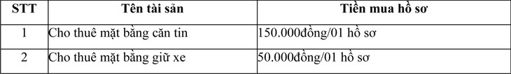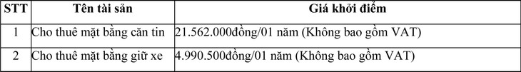 a) Loại tài sản: Cho thuê mặt bằng căn tin và mặt bằng giữ xe.