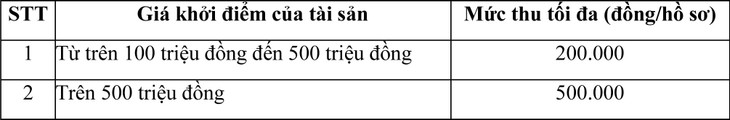 - Tiền mua hồ sơ tham gia đấu giá, cụ thể: