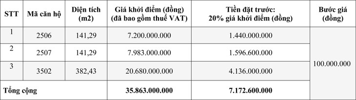 Nguyên khối tài sản bao gồm hiện trạng 03 (ba) căn hộ tại Tòa nhà Sapphire 1, Sapphire 2, số 92 Nguyễn Hữu Cảnh, Phường 22, quận Bình Thạnh, TP. Hồ Chí Minh, cụ thể như sau: