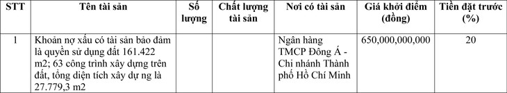 Tên Người có tài sản đấu giá: Ngân hàng TMCP Đông Á - Chi nhánh Thành phố Hồ Chí Minh