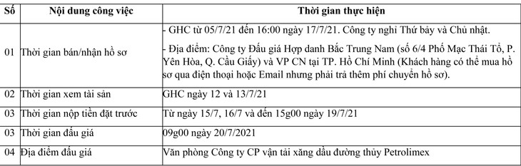 2. Tên Người có tài sản đấu giá: Công ty CP vận tải xăng dầu đường thủy Petrolimex: Tầng 7-Tòa nhà số 322 Điện Biên Phủ, Phường 22, Quận Bình Thạnh, TP. Hồ Chí Minh; Điện thoại: 0283.8991101.