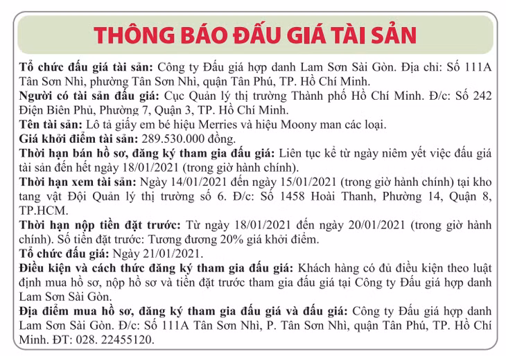 Ngày 29/4/2026, đấu giá khoản nợ phát sinh của Công ty cổ phần Thương mại Đầu tư Tín Thương tại BIDV - CN Quận 7 Sài Gòn