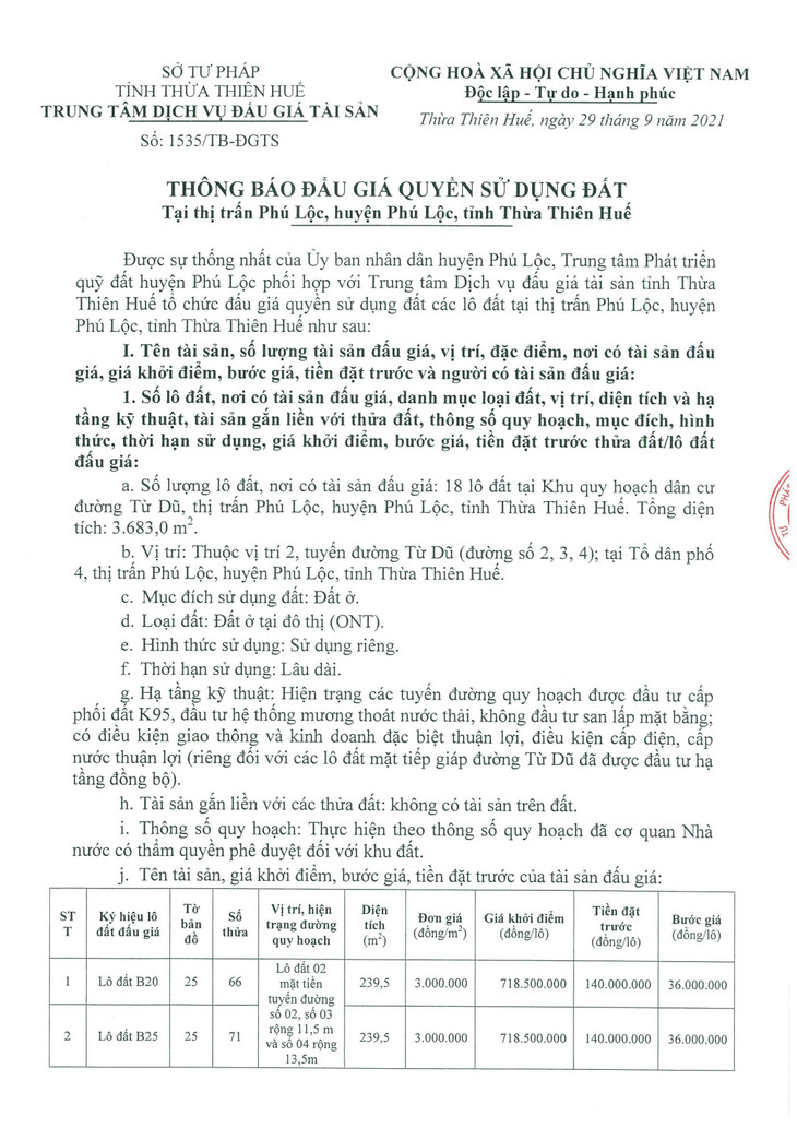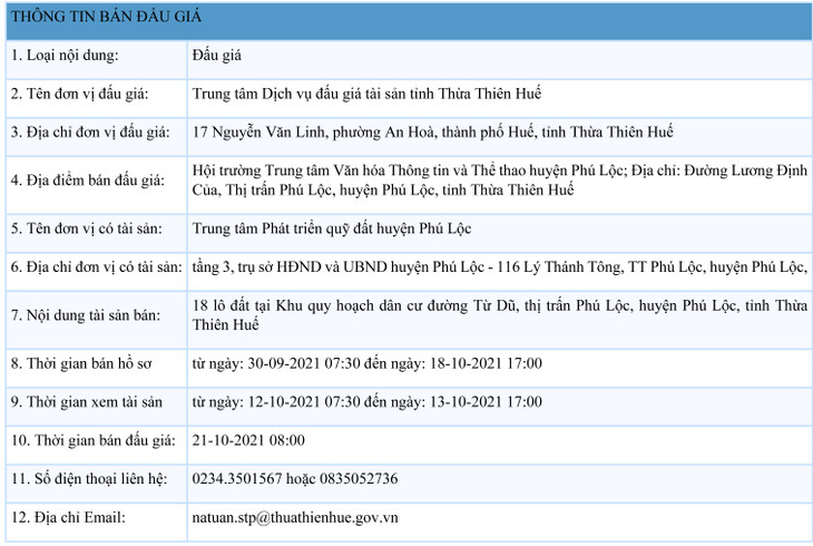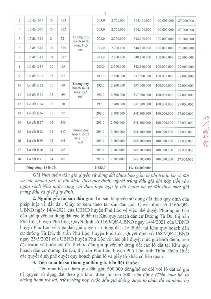 18 lô đất tại Khu quy hoạch dân cư đường Từ Dũ, thị trấn Phú Lộc, huyện Phú Lộc, tỉnh Thừa Thiên Huế