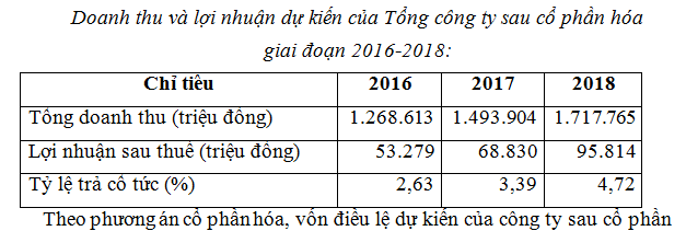 Theo phương án cổ phần hóa, vốn điều lệ dự kiến của công ty sau cổ phần hóa là hơn 1.419 tỷ đồng. Trong đó, hơn 1,1 triệu cổ phần, tương đương 0,82% vốn điều lệ, dành để bán cho người lao động và hơn 140,8 triệu cổ phần, tương đương 99,18% vốn điều lệ sẽ được bán đấu giá công khai cho công chúng đầu tư tại Sở GDCK Hà Nội vào ngày 21/11/2016.