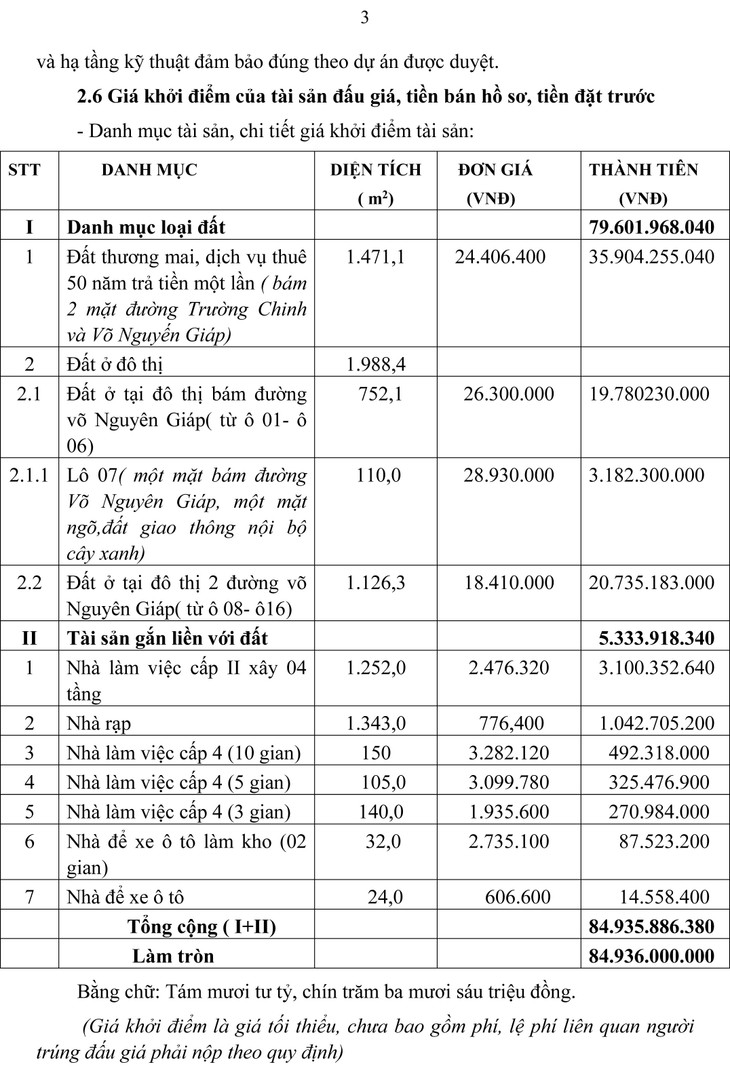 Thông tin về tài sản đấu giá, giá khởi điểm, tiền đặt trước: