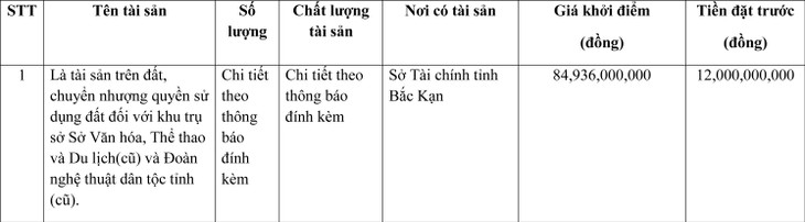 Tên Người có tài sản đấu giá: Sở Tài chính tỉnh Bắc Kạn
