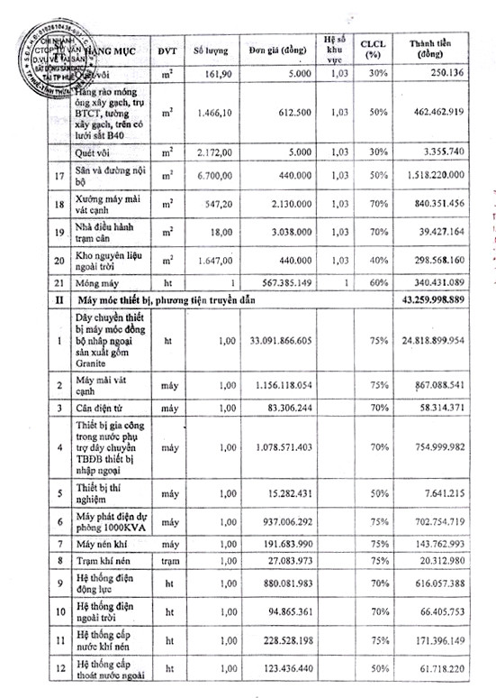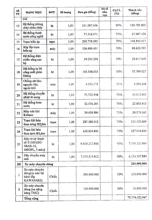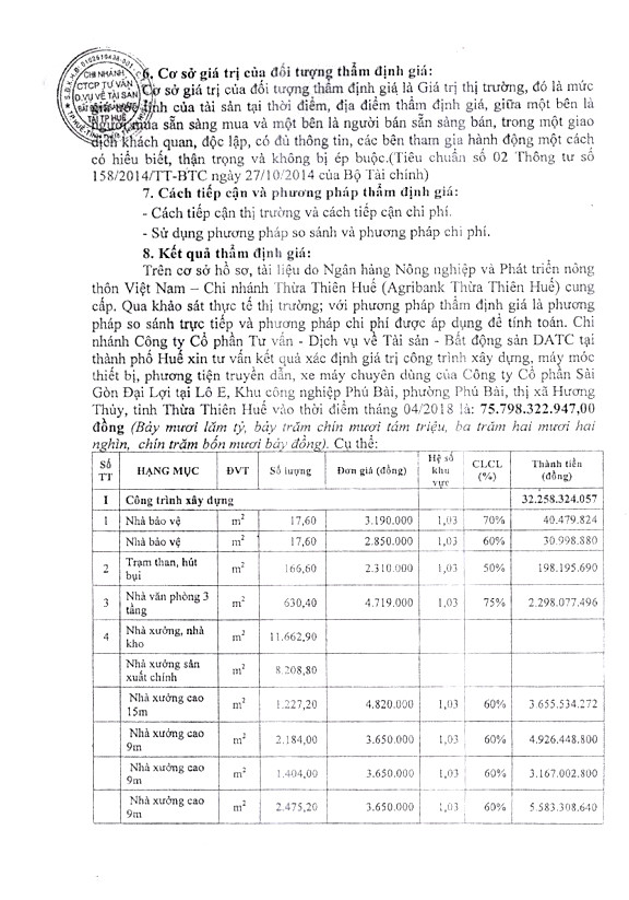 Tài sản đấu giá: Toàn bộ tài sản của Công ty Cổ phần Sài Gòn Đại Lợi tại Lô E, KCN Phú Bài, Hương Thủy, tỉnh Thừa Thiên Huế (Đính kèm danh mục).