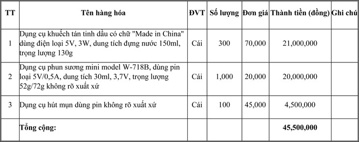 4. Danh mục tài sản: Tài sản là tang vật phương tiện vi phạm hành chính bị tịch thu: