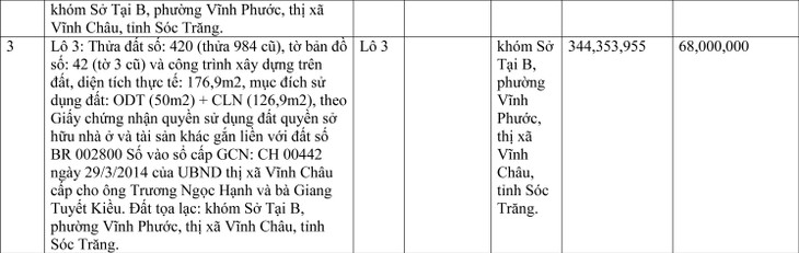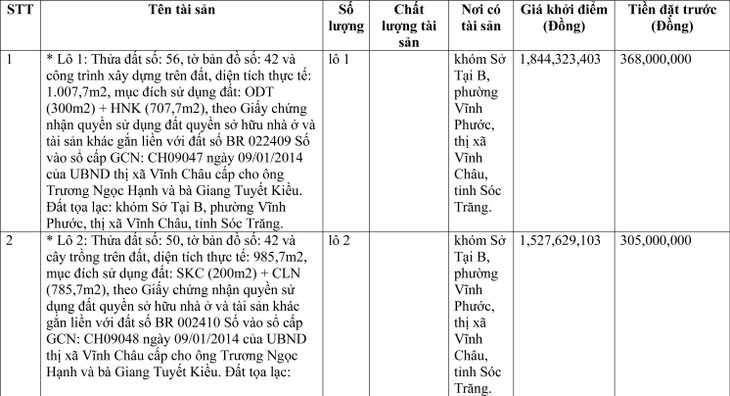 Tổ chức đấu giá tài sản: Công ty Đấu giá hợp danh Sóc Trăng