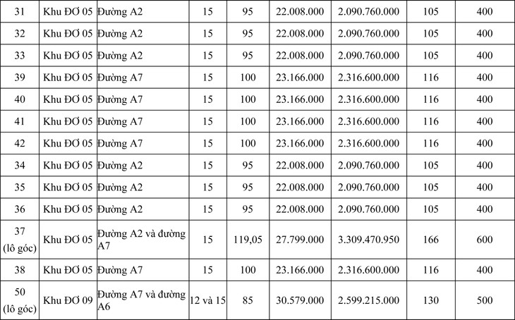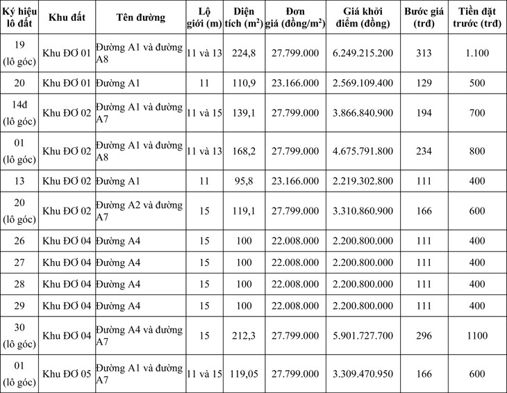 Phương thức đấu giá: Trả giá lên, đấu giá riêng từng lô đất.