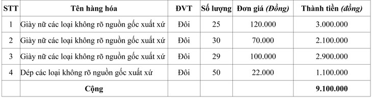 Nơi có tài sản: Đội QLTT số 1 – Cục quản lý thị trường tỉnh Quảng Trị.