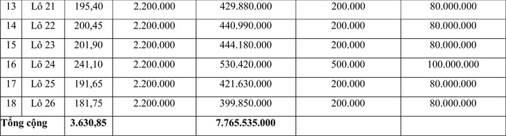 - Tiền đặt trước để tham gia đấu giá: Từ 70.000.000 đồng đến 100.000.000 đồng/ 01 hồ sơ tham gia đấu giá;