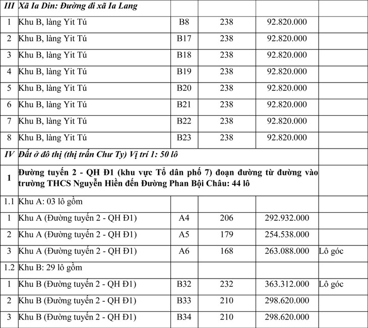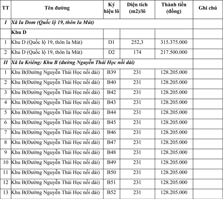 15.Địa điểm bán hồ sơ, bỏ phiếu trả giá tại hai nơi: Doanh nghiệp Đấu giá tư nhân Đại Phát, Phòng Tư Pháp huyện Đức Cơ.