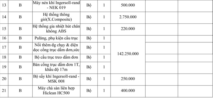- Tài sản nhóm A: Bán riêng lẻ từng tài sản