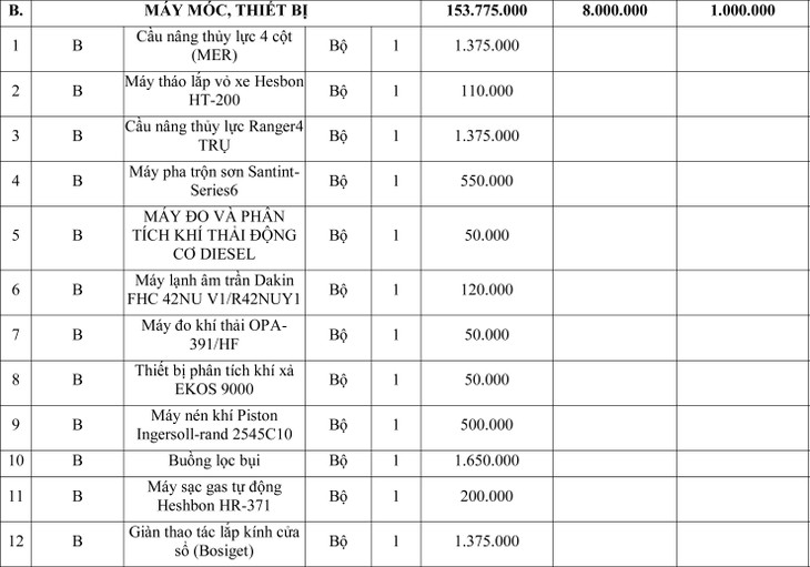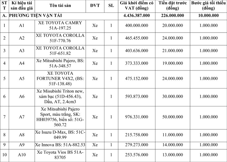 4. Tài sản đấu giá: phương tiện vận tải và máy móc, thiết bị năm 2020
