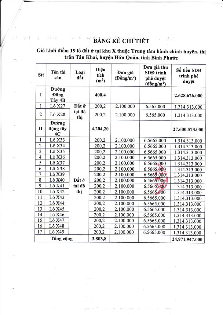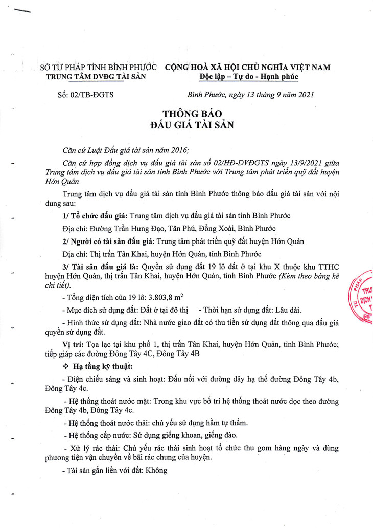 Quyền sử dụng đất 19 lô đất ở tại khu X thuộc khu TTHC huyện Hớn Quản, thị trấn Tân Khai, huyện Hớn Quản, tỉnh Bình Phước