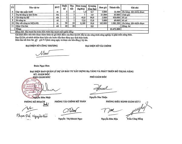 - Cáp ngầm trung thế, xà đỡ sứ, cáp AV 50, cáp AV 95, cột bê tông 14m, cột thép hạ thế..., giá khởi điểm: 23.471.000 đồng.