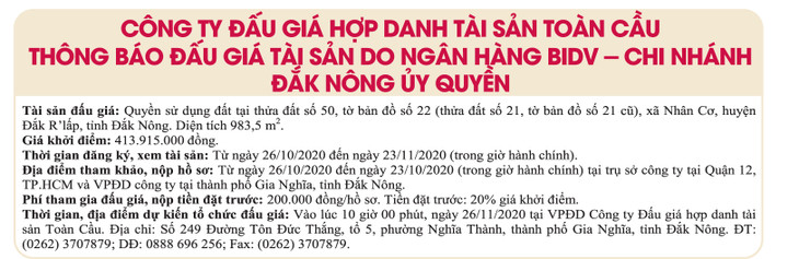 Ngày 23/12/2025, đấu giá quyền sử dụng đất và tài sản gắn liền với đất tại xã Nha Bích, tỉnh Đồng Nai