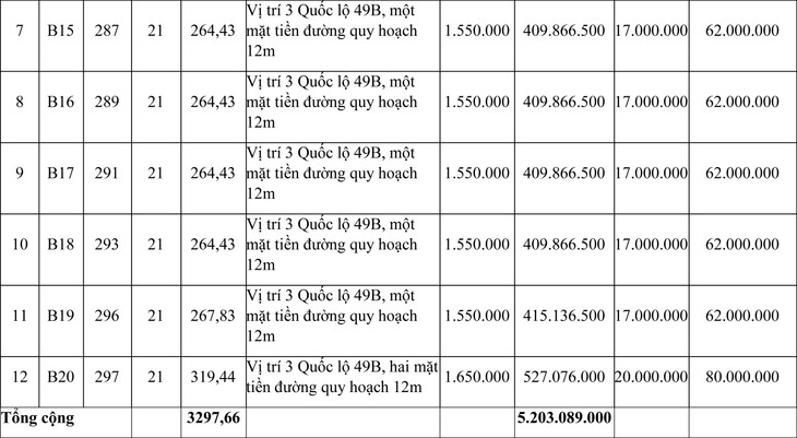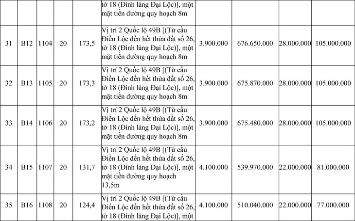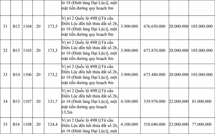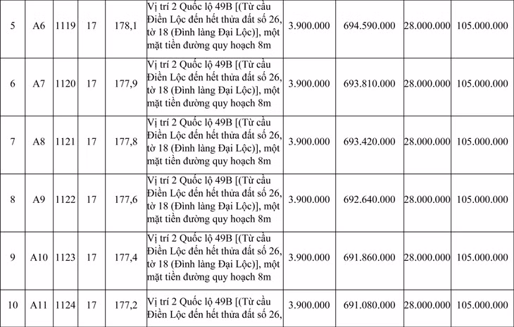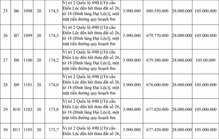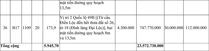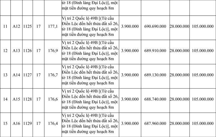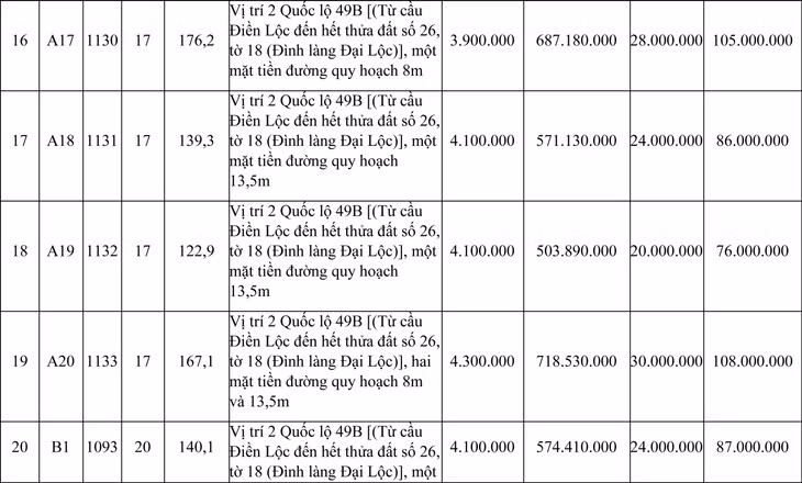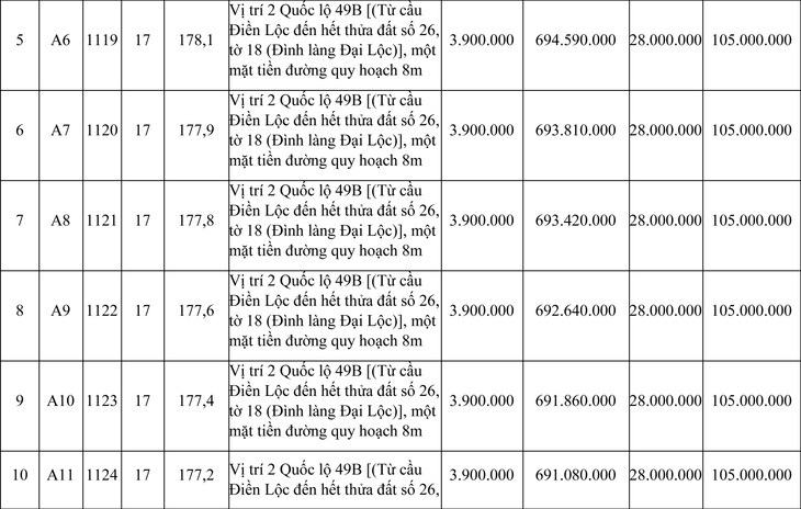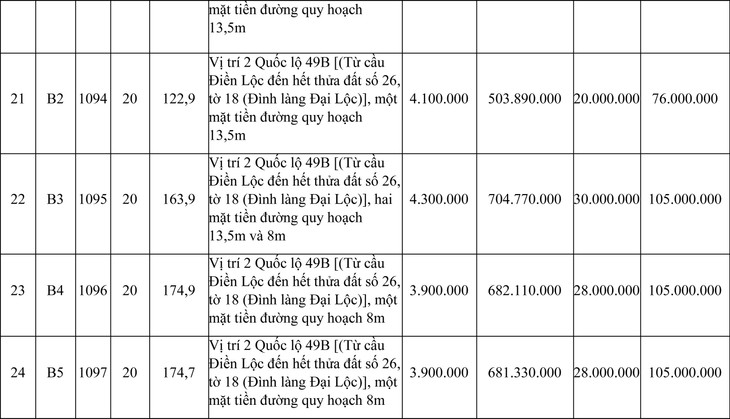b. Vị trí: Nằm ở vị trí 2, Quốc lộ 49B (Từ cầu Điền Lộc đến hết thửa đất số 26, tờ 18 (Đình làng Đại Lộc)).