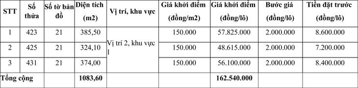 (Mức giá khởi điểm chưa bao gồm lệ phí trước bạ về đất và các khoản phí, lệ phí khác theo quy định).