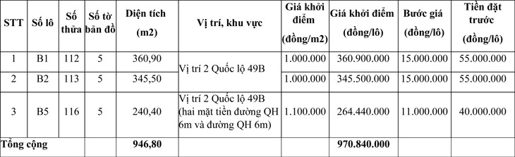 1. Xã Điền Hải - Khu dân cư thôn 1: 03 lô.