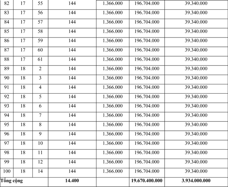 - Tiền mua hồ sơ tham gia đấu giá: 100.000 đồng/hồ sơ.