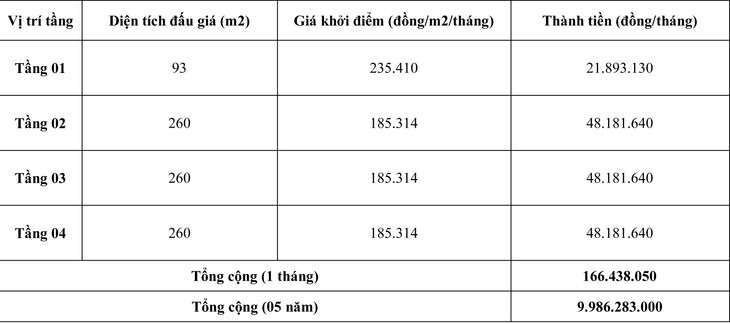 Nguồn gốc tài sản: là những diện tích sàn của Bảo hiểm tiền gửi Việt Nam được phép đấu giá quyền thuê diện tích sàn để làm kinh doanh.