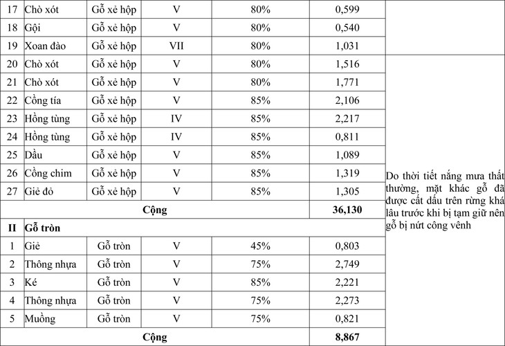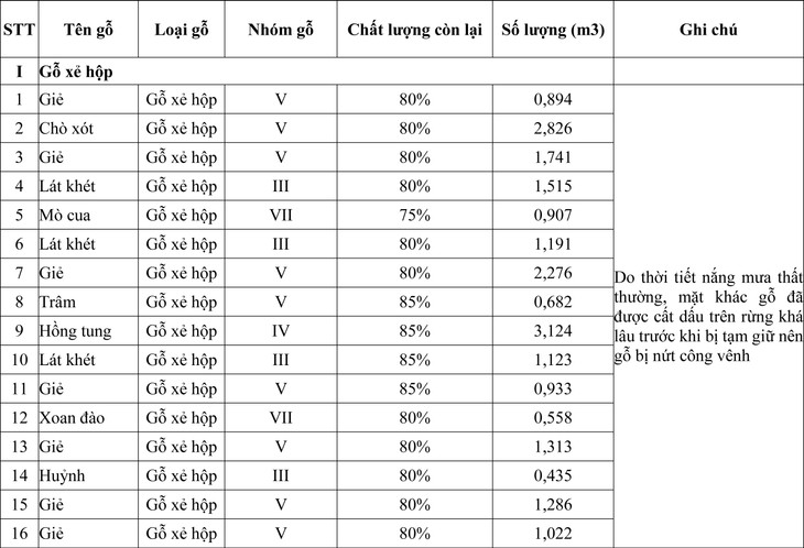 3.1. Tài sản đấu giá: 36,13 m3 gỗ xẻ hộp các loại và 8,867 m3 gỗ tròn.