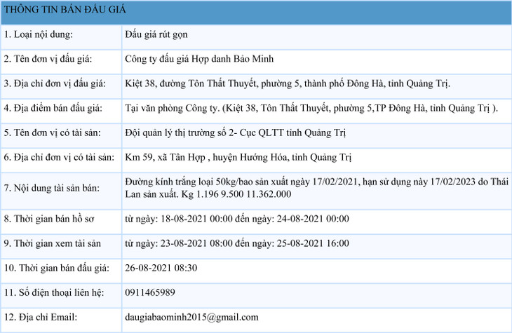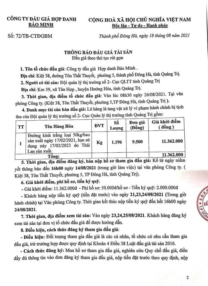 Đường kính trắng loại 50kg/bao sản xuất ngày 17/02/2021, hạn sử dụng này 17/02/2023 do Thái Lan sản xuất. Kg 1.196 9.500 11.362.000