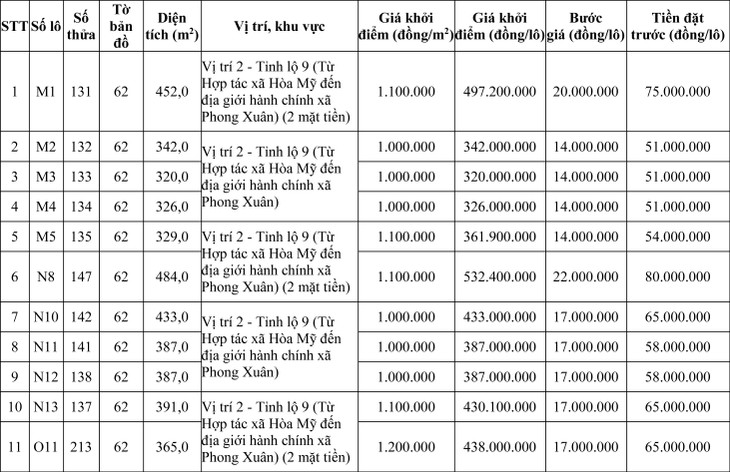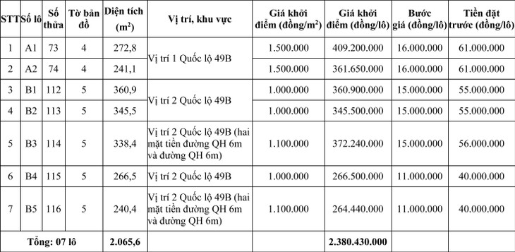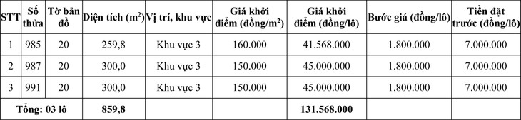 (Mức giá khởi điểm chưa bao gồm lệ phí trước bạ về đất và các khoản phí, lệ phí khác theo quy định).