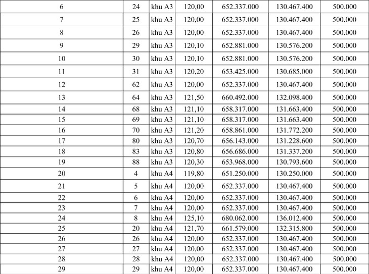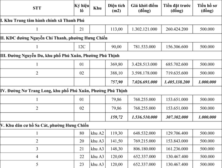 Các lô đất được đấu giá riêng lẻ theo từng lô (Có danh sách chi tiết các lô đất kèm theo)