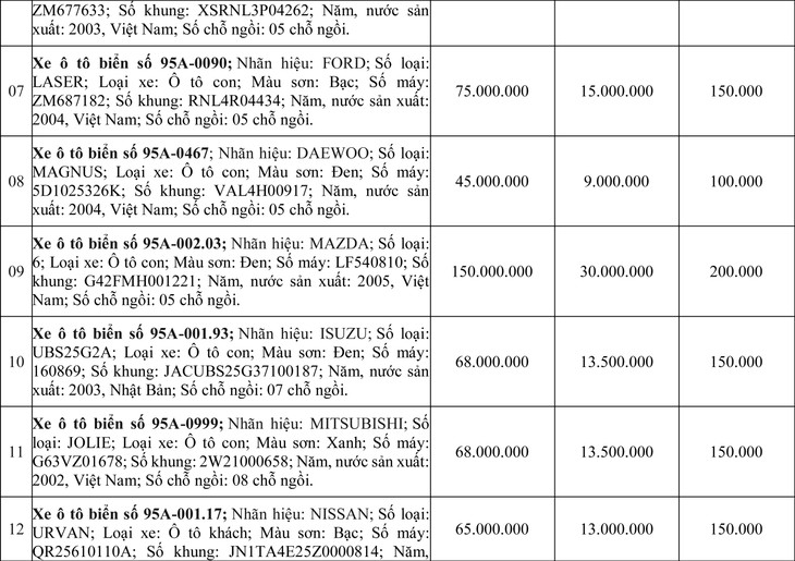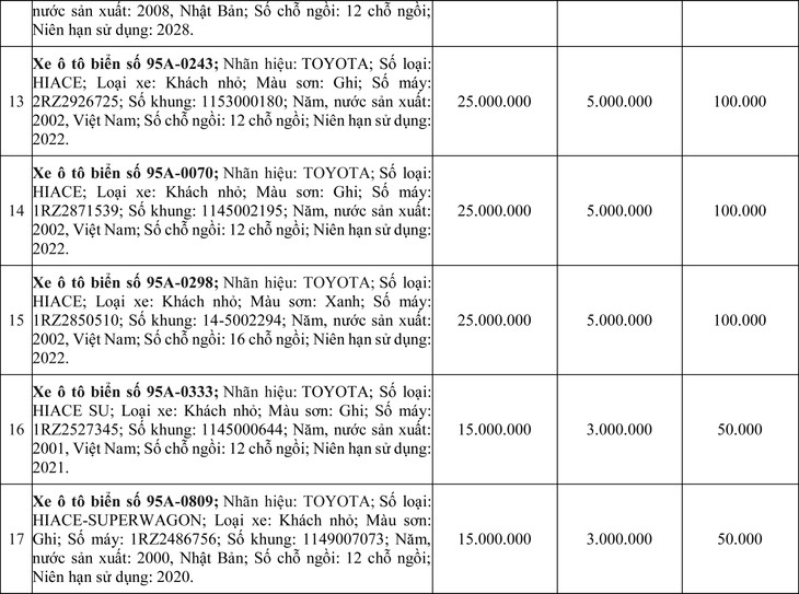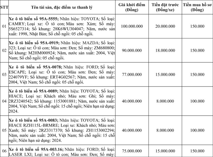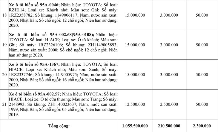 Tài sản đấu giá gồm 21 xe ô tô thanh lý (Đăng ký và tổ chức đấu giá từng xe).
