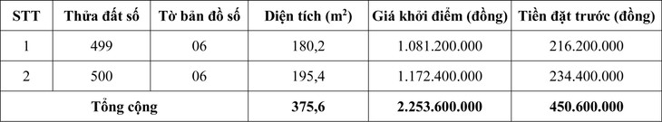 4. Giá khởi điểm của tài sản đấu giá: 2.253.600.000 đồng (Bằng chữ: Hai tỷ, hai trăm năm mươi ba triệu, sáu trăm ngàn đồng).