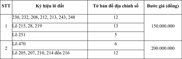 Bước giá (Mức chênh lệch tối thiểu của lần trả giá sau so với lần trả giá trước liền kề) và tính cho một vòng đấu/lô đất kể từ vòng đấu thứ 2 trở đi, cụ thể bước giá các lô đất đấu giá như sau: