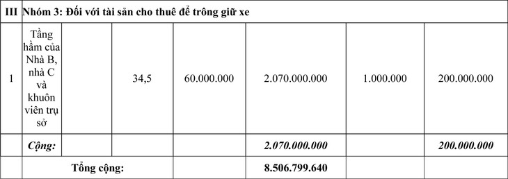 + Đối với tài sản cho thuê để trông giữ xe: chi phí sửa chữa, cải tạo là 712.500.000đ (Bảy trăm mười hai triệu đồng).
