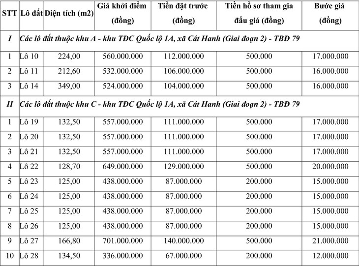 10 lô đất thuộc khu C - khu TĐC Quốc lộ 1, xã Cát Hanh (Giai đoạn 2) TBĐ 79;