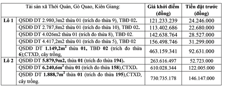 Tổ chức đấu giá: ngày 28/6/2024 tại CN.Kiên Giang.