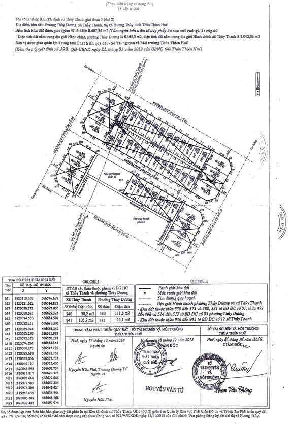 - Khu tái định cư Thủy Thanh giai đoạn 3 (đợt 2), phường Thuỷ Dương và xã Thủy Thanh, thị xã Hương Thuỷ.