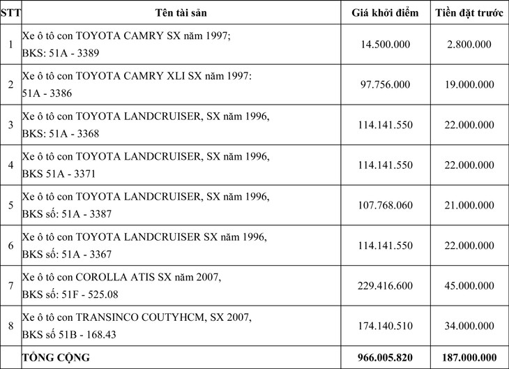 3. Tài sản bán đấu giá: Lô phương tiện vận tải đã qua sử dụng