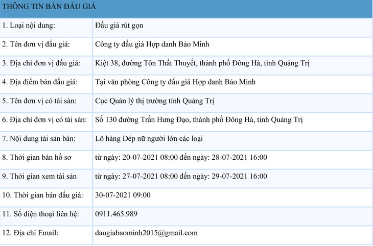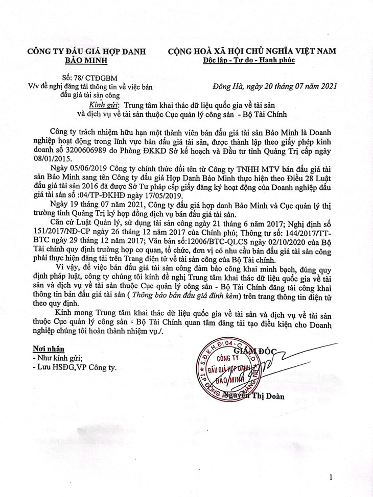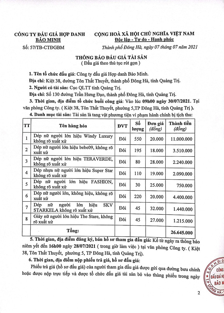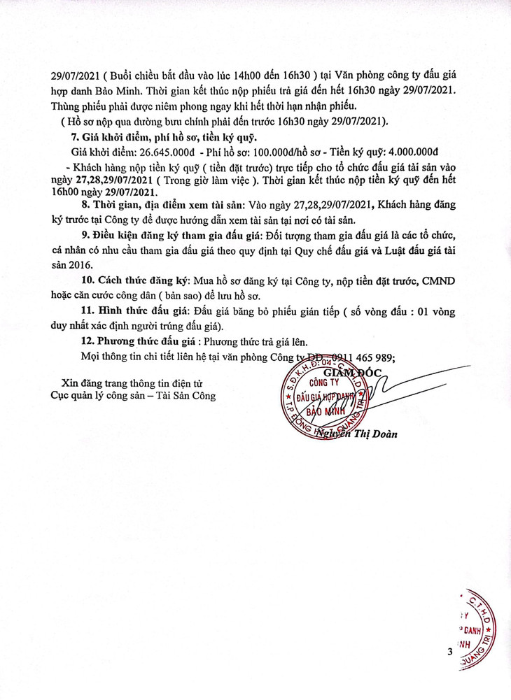 Ngày 29/12/2025, đấu giá 01 quyền sử dụng đất và tài sản gắn liền với đất tại phường Nam Đông Hà, tỉnh Quảng Trị