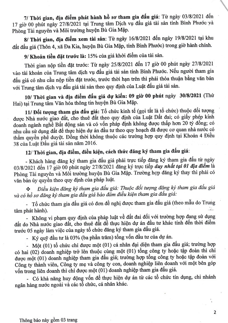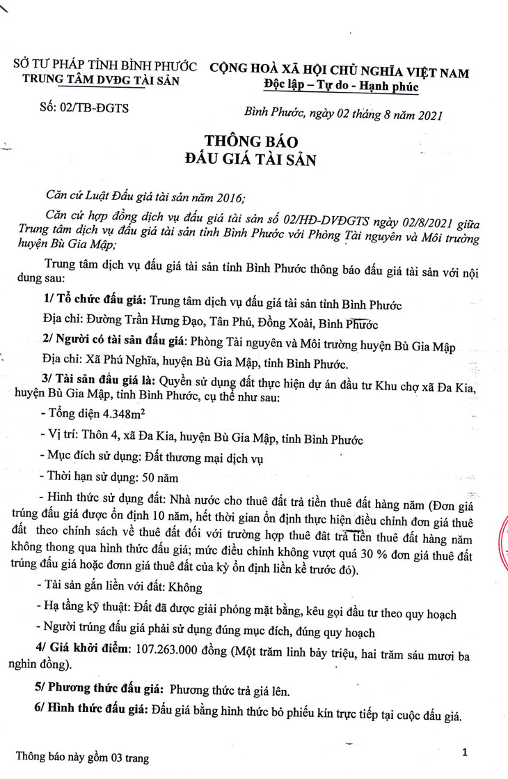 Quyền sử dụng đất thực hiện dự án đầu tư Khu chợ xã Đa Kia, huyện Bù Gia Mập, tỉnh Bình Phước