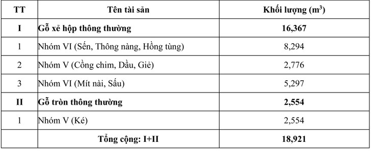 3.1. Lô 1: 18,921 m3 gỗ xẻ hộp, tròn các loại. Đặc điểm của tài sản