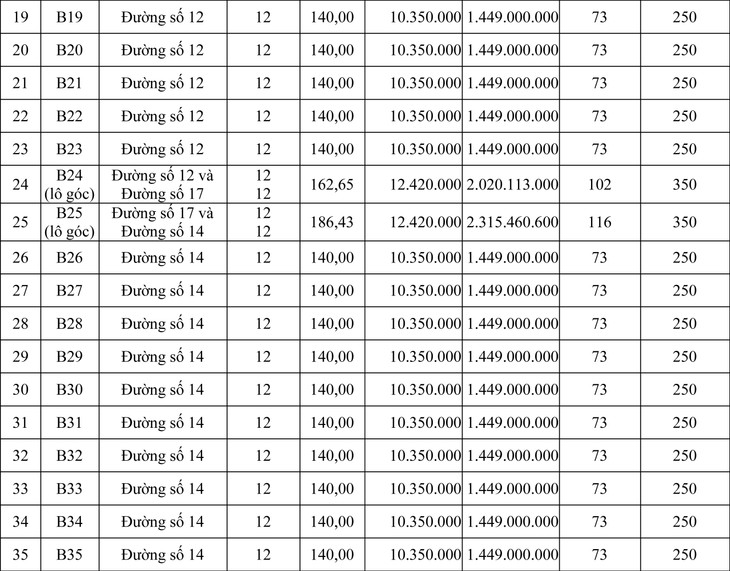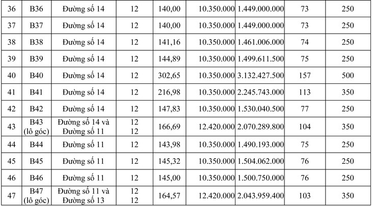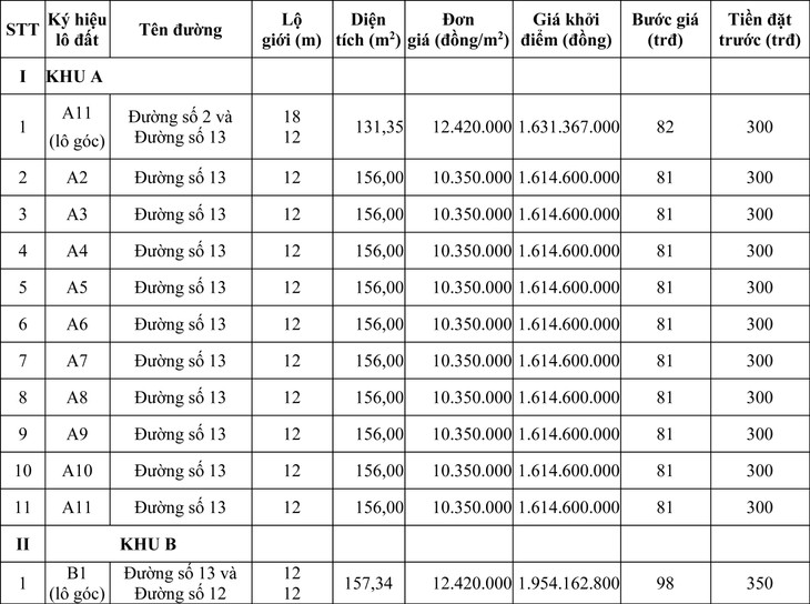Phương thức đấu giá: Trả giá lên; đấu giá riêng từng lô đất.
