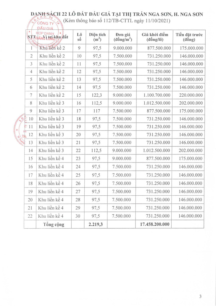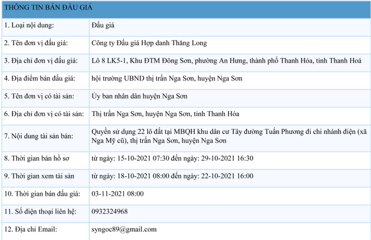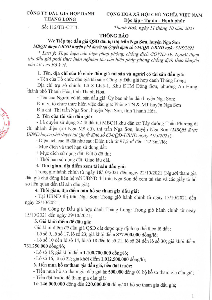 Quyền sử dụng 22 lô đất tại MBQH khu dân cư Tây đường Tuấn Phương đi chi nhánh điện (xã Nga Mỹ cũ), thị trấn Nga Sơn, huyện Nga Sơn.