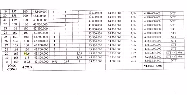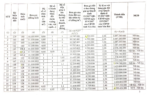 Quỹ đất ở tại tổ dân phố số 6, thị trấn Yên Thế, huyện Lục Yên, tỉnh Yên Bái, gồn 31 thửa: Từ thửa số 139 đến thửa số 169. Diện tích các thửa từ 94,6m2/thửa đến 229,4m2/thửa; Giá khởi điểm từ 1.416.360.000đ/thửa đến 6.599.454.000đ/thửa.