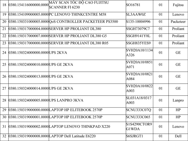 BẢNG KÊ LÔ THIẾT BỊ TIN HỌC THANH LÝ