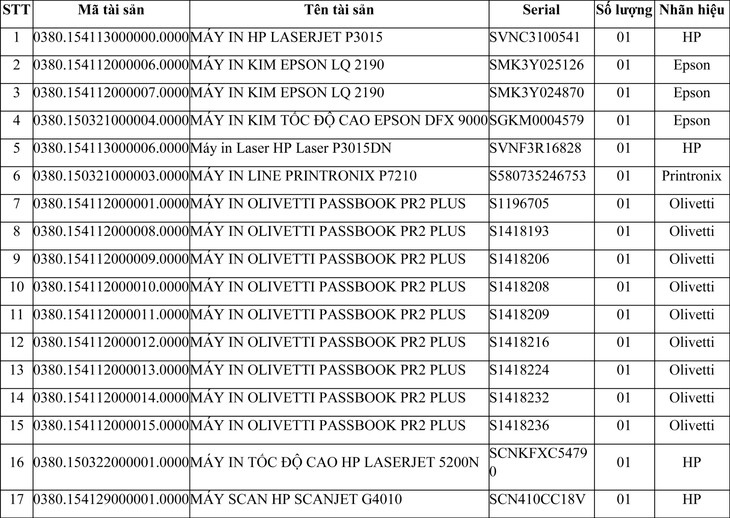 Tài sản đấu giá: Lô thiết bị tin học đã qua sử dụng (bao gồm 32 thiết bị). (Danh sách cụ thể liên hệ Công ty Đấu giá Hợp danh Bến Thành).